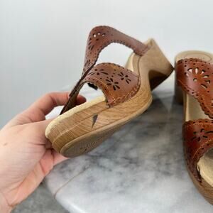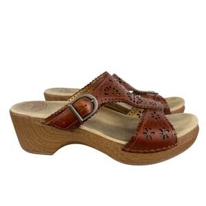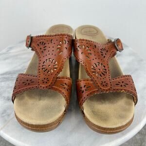Dansko Women's Brown Sapphire Leather Block Heel Classic Slide Sandal (Sz 9.5)