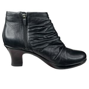 Dansko Women’s Buffy Ruched Black Leather Ankle Boot Size 40 US 9.5/10