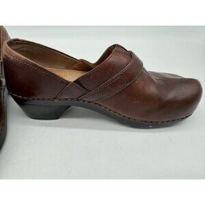 Dansko Womens Heels Leather Clogs Shoes Size 39 Brown Slip On Casual Round Toe