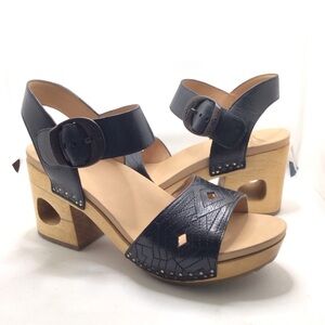 Dansko Womens Odele Black Tumbled Calf Block Heeled Sandals Size 40 (9.5-10 US)