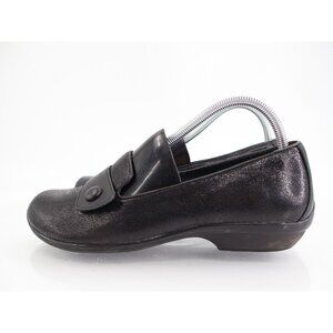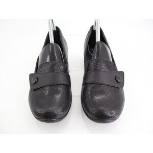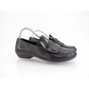 Dansko Women's Olena Loafer Size 40 9.5 Slip On Flat Shoe Black Metallic Leather