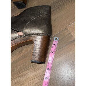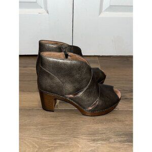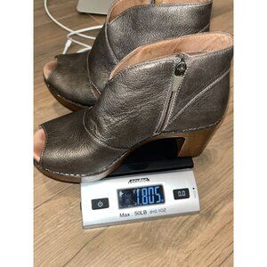 Stylish Dansko heels with a peep-toe design. Metallic brown leather finish. Comfortable and chic.