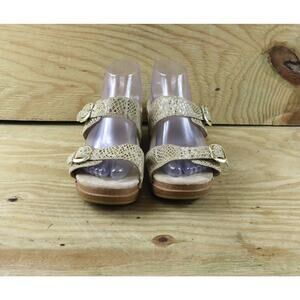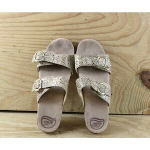 Dansko Womens Sandals 10 Sophie Metallic Gold Snake Print Leather 2 Buckle Shoes