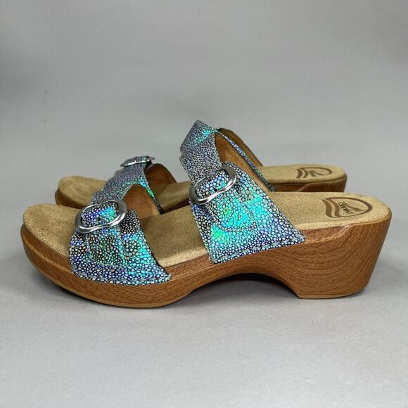 Dansko Women's Size 10.5 Sophie Blue Iridescent Wood Midsole Sandals