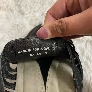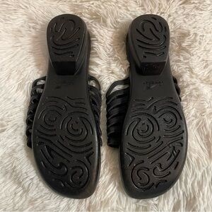 Dansko Women's Black Leather Strappy Thong Sandal With 1 Inch Heel. Size 39 = US 8.5 - 9