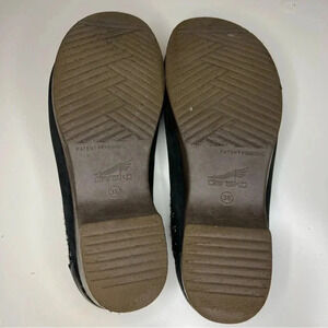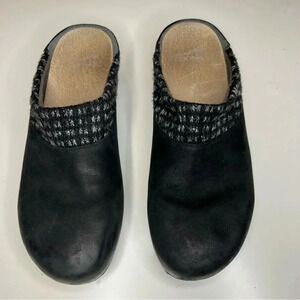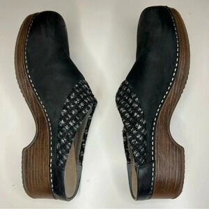 Dansko Women’s Slip On Clog, Size Euro 38 Leather and Woven Black and Gray