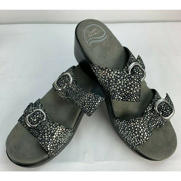 Excellent Condition Dansko Womens Sophie Sandal Black Dots Size 40 which converts to a US size 9.5-10.