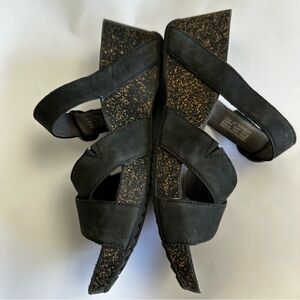 Dansko Women’s Susie Black Nubuck Leather Suede Slip On Cork Wedge Slides Sandal