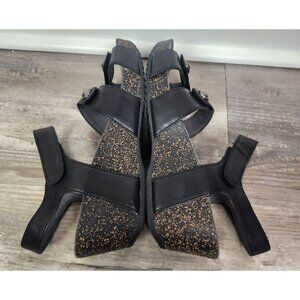 Dansko Women's Sz. 40 Savannah Cork Wedge Black Leather Sandals