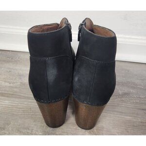 Dansko Women's Sz. 41Delphina Black Leather Peep-Toe Booties are in gently used condition.