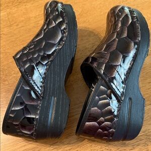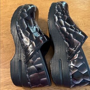 Stylish Dansko mules with a textured black design. Perfect for casual wear.