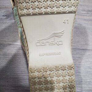 Dansko Women's Victoria Vegan Green Grass Canvas Classic Clogs Sz 41 US 10.5-11. Please note there is some discoloration on a section of each rope area on each shoe, see attached pictures. The insole of each shoe is not attached at the heal area.