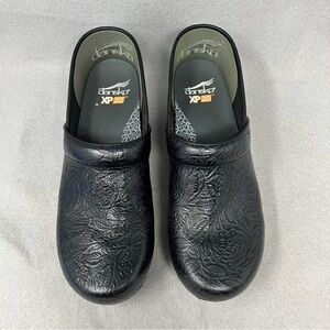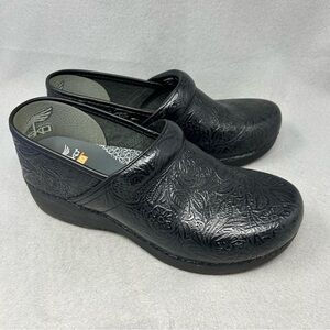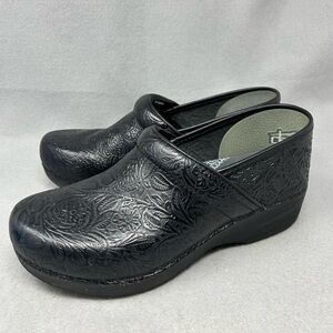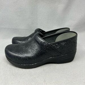 Dansko Womens XP 2.0 Clog Shoes Floral Tooled Black Comfort Nursing Sz 41