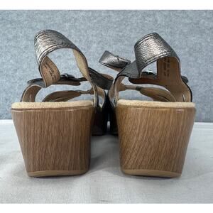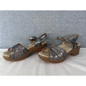 Dansko Women's sz 40 Miriam Clog Strappy Sandal Pewter Faux Buckle Tan Wedge