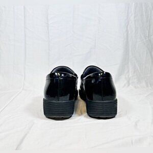 This pair of Dansko Work Wonders Patent Camellia Multi Leopard Clogs are 10 1/4" from heel to toe and 3 3/4" wide.