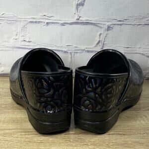 Dansko XP 2.0 Black Night Rose Patent Leather Floral Clogs EU 39 US 9 Comfort
