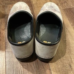 Gently used Dansko XP 2.0 clogs size 42. Tried to wear these for a while at work but unfortunately, they were just too big. Hands down the most comfortable pair of work shoes I’ve ever worn. Minor signs of wear. Material is soft, almost suede-like grayish purple.
