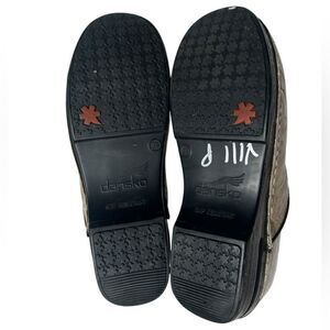 Stay comfortable and stylish all day with these Dansko XP slip-resistant clogs. Designed for professionals and anyone on their feet for extended periods, these clogs feature a beautiful metallic floral pattern, durable leather upper, and cushioned support. Perfect for work or casual wear.