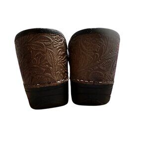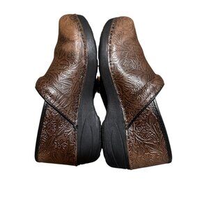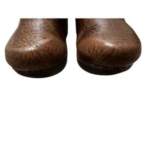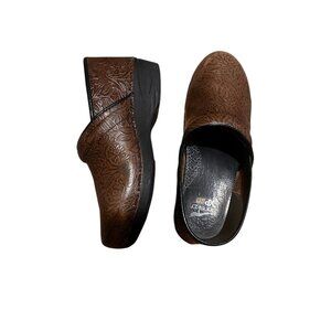 Dansko XP Leather Clogs Women 40 9.5 Floral tooled Brown Slip-On Nurse Career