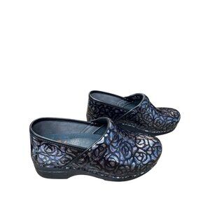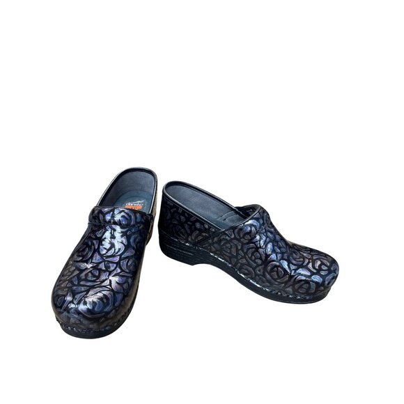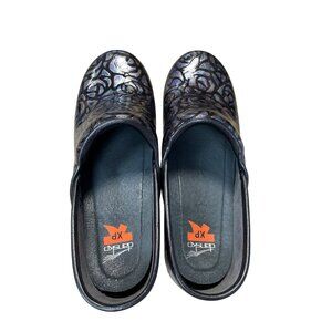 These Dansko XP clogs provide exceptional comfort and support, ideal for long hours on your feet. The slip-resistant outsole ensures safety, while the stylish embossed floral design offers a professional look suitable for various settings. Crafted with quality materials, these clogs are a reliable choice for work environments. In very good condition in and out and no defects noted. SKU 9187