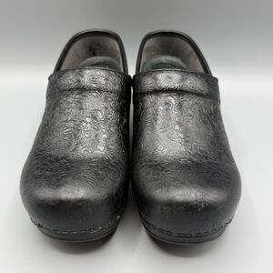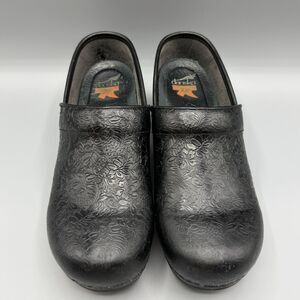 Dansko XP Womens Floral Clog Black Leather Floral Casual Slip On Shoes EU39/US 9
