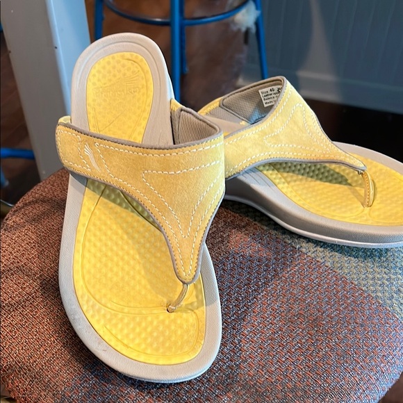 Bright yellow sandals with comfortable design. Perfect for casual wear.
