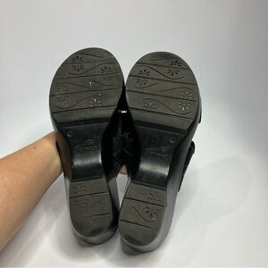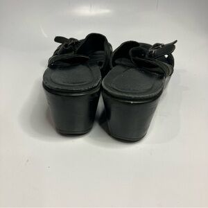Shows some wear on the edges of the footbed. Please see additional pictures. 💜🖤💙