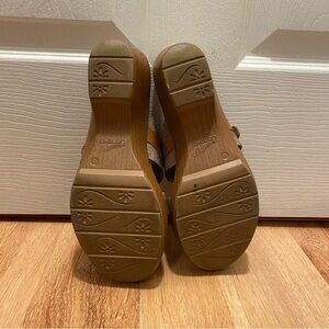 Dansko brown Jessie Lizard Sand Wooden heel double banded slip on wedge sandal