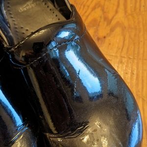 black patent leather clogs from Dansko