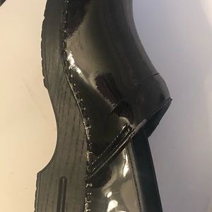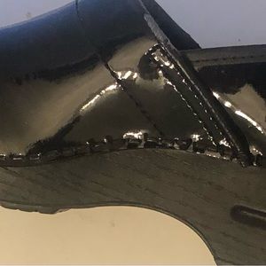 Black patent leather clogs size 40. Never worn but from sitting and as time passed they got shuffled around in the closet. Sales are final. Thank you.