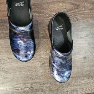 Blue purple patterned Dansko clogs in very good used condition! Size 39