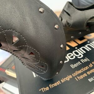 Dansko clogs in good used condition, I’ve cleaned, and polished the leather. Reinforced with a shoe glue, some of the chipping at the toe of the shoe as noted in photos.