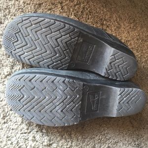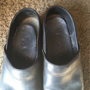 Extremely comfy clogs that heave been well loved but have many, many, more wears to give! They need a little oil and then most scuffs will go away- that is the beauty of the oiled leather. One insole did shrink so they may need new insoles to be ideal. Price reflects wear.