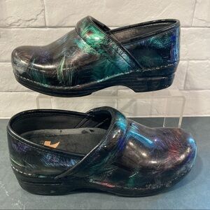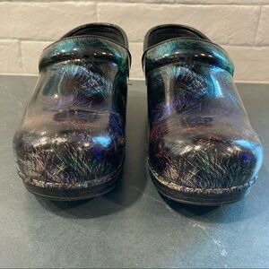 Dansko professional sz 37 US 7 feather multicolor patent clogs