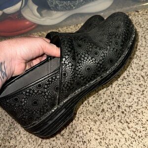 Dansko women’s black and silver medallion Embossed XP Clogs size 41 (10.5-11)