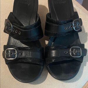 EUC- black sandals with stylish adjustable buckle straps. Comfortable and versatile for any occasion.