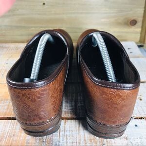 Dansko XP Brown floral tooled clogs Sz 38 Some wear on toe see pics In great preloved condition