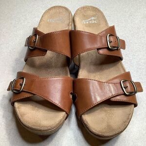Dansko Leeann Sandal 41 Tan Burnished Leather Slip On