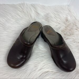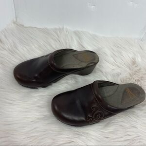 Dansko Slip on clogs/mules brown leather used condition minor scuffs and wear
