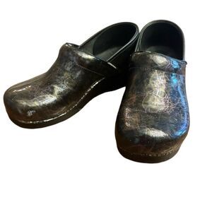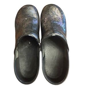 Dansko Professional purple marbled patent leather clogs. Some wear and cracking. See pic. Soles are in excellent condition.