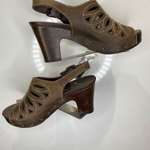 Dansko Rowena Brown Slingback High Heel Sandal Cut Outs Open Toe 39 US 8.5-9
