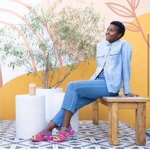 Step out in style with 's vibrant multicolor sandals. Featuring a blend of purple, pink, orange, and yellow, these shoes are perfect for adding a pop of color to any outfit. Enjoy comfort and fashion with every step.