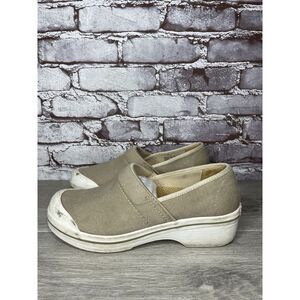 Dansko Volley Vegan Tan Beige Khaki Canvas Non Slip Clogs Women Sz 39EU/8.5M US
