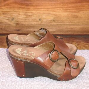 Dansko Womens 7 Fern Leather Platform Wedge Buckle Sandals Shoes