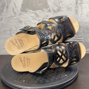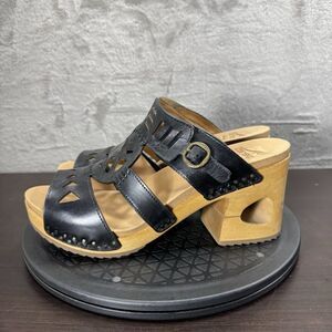 Dansko Womens Size 10-10.5 Oralee Black Cutout Boho Wood Chunky Heel Mules