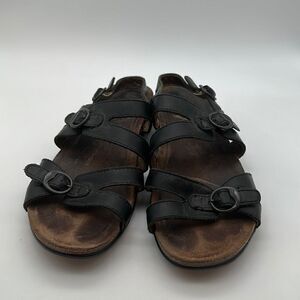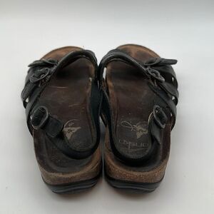 Dansko Womens Slingback Sandals Black Buckle Wedge Heels Leather 37/6.5