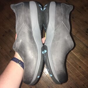 Comfortable, arch support navy slip on clogs. Professional shoes. Snap detail with elastic next to it. In good, used condition. From a pet and smoke free house. Happy to bundle!