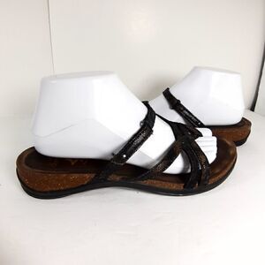 Dansko women's Janelle Eu40 US9-9,5 Leather Animal Print Strappy Thong Sandals.