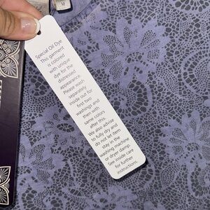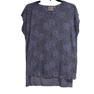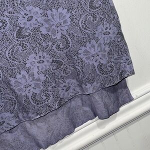 Dantelle Lavender Lace print Blouse medium high low capped sleeve