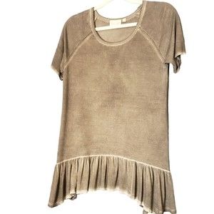 Dantelle Mineral Washed Ruffle Hem Short Sleeve Raw Cut Gray Tee M